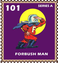 "We knew we wanted a classic '70s character never previously profiled on a stamp. Handbook writer Michael Hoskin suggested we go with Stamp #101, and use Forbush Man. I went to mvstamps.com for a quick reference of the historical series, and decided we should extend Series A. With a nod of approval from our Handbook Chief, Jeff Christiansen, Mr. Hoskin directed me to the cover of Not Brand Ecch #5.